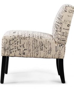 Bonjour!! Modern Accent Chair Off-White French Cursive Pattern Upholstery with Black Wood Legs is perfect addition to any living room. Simplistic armless chair with a letter pattern exterior will balance out your home décor. Comfortable seat cushion filled with soft sponge, upholstered deep seat and ergonomic back cushion offer maximum comfort & cozy. Premium linen fabric is ultra soft and gives you an excellent smooth sense of touch.