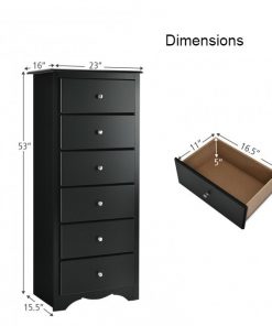 Strapped for space for need plenty of storage? This Modern Black 6 Drawer Tall Wood Dresser Chest is perfect for any bedroom no matter the size. Practical and attractive, this tall design provides ample storage space for all rooms