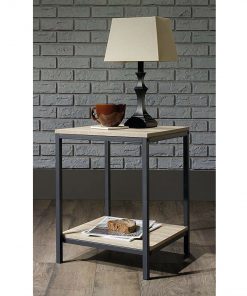 Modern Black Metal Frame End Table with Oak Finish Wood Top and Bottom Shelf
