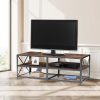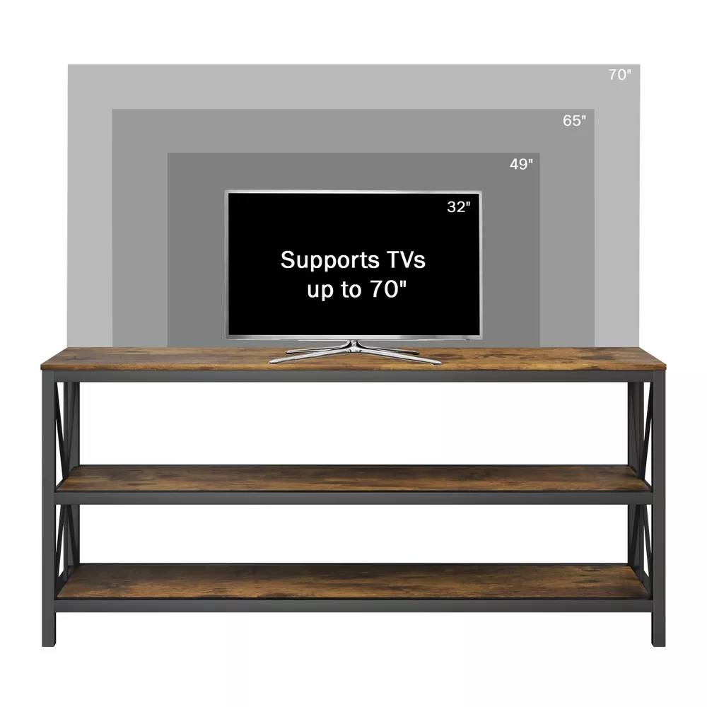 - Modern Black Metal TV Stand with Barn Wood Finish Shelves – TV’s up to 70-inch