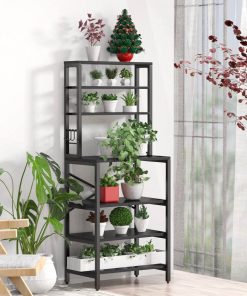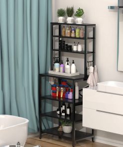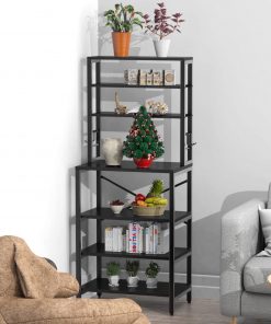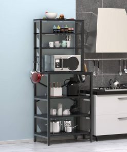 This Modern Black Metal Wood Kitchen Baker’s Rack Shelf Microwave Stand provides enough space for storing a variety of everyday essentials, keeping your vegetables, fruit, microwave, cooking and eating utensils, plates and other kitchen accessories in plain sight and easy to access. 5 free S-shaped hooks are perfect for hanging kitchen towels and cooking spoons.It is your best choice for storage and saving space. This baker’s rack is made of particleboard and iron bracket. The iron bracket is sturdy and durable, and the wooden board is waterproof and anti-friction. Also, its dimensions are 23.6 inches (length) x 15.7 inches (width) x 70.2 inches (height). Give your kitchen a refresh thats as charming as it is practical; black give this kitchen shelf a unique look that youll want to show off during your next dinner party. This free standing backer rack not only can be used as a kitchen backer rack, but also can be used as an entryway storage shelf, spice rack and storage rack. We’ve got you covered anytime you have any issue regarding our product quality or any problem during use.