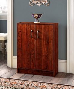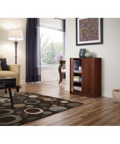 Keep craft supplies, books, magazines, and more neatly stowed away in this Modern Cherry 2 Door Adjustable Shelves Accent Cabinet Storage Chest, featuring a cherry finish. This Modern Cherry 2 Door Adjustable Shelves Accent Cabinet Storage Chest can accommodate an 8.5″ x 11″ ream of paper. The handles measure approximately 4.96 in. H – the space between the holes is approximately 3.78 in.