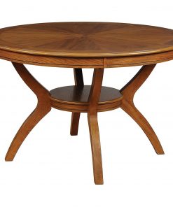 Create a casual fashion statement in your dining area with this Modern Classic 48-inch Round Dining Table in Medium Walnut Wood Finish. The table features an open bottom shelf, sleek flared back legs and a spacious round table top that will create the perfect look for intimate gatherings or casual get together.