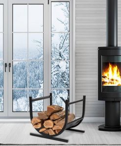 - Modern Classic Black Steel Firewood Rack Log Holder for Indoor or Outdoor Use