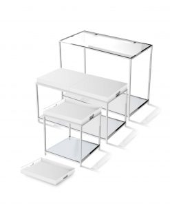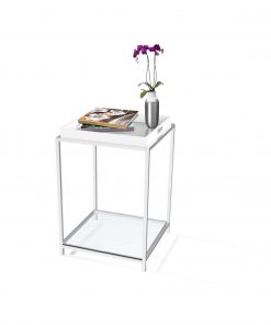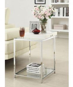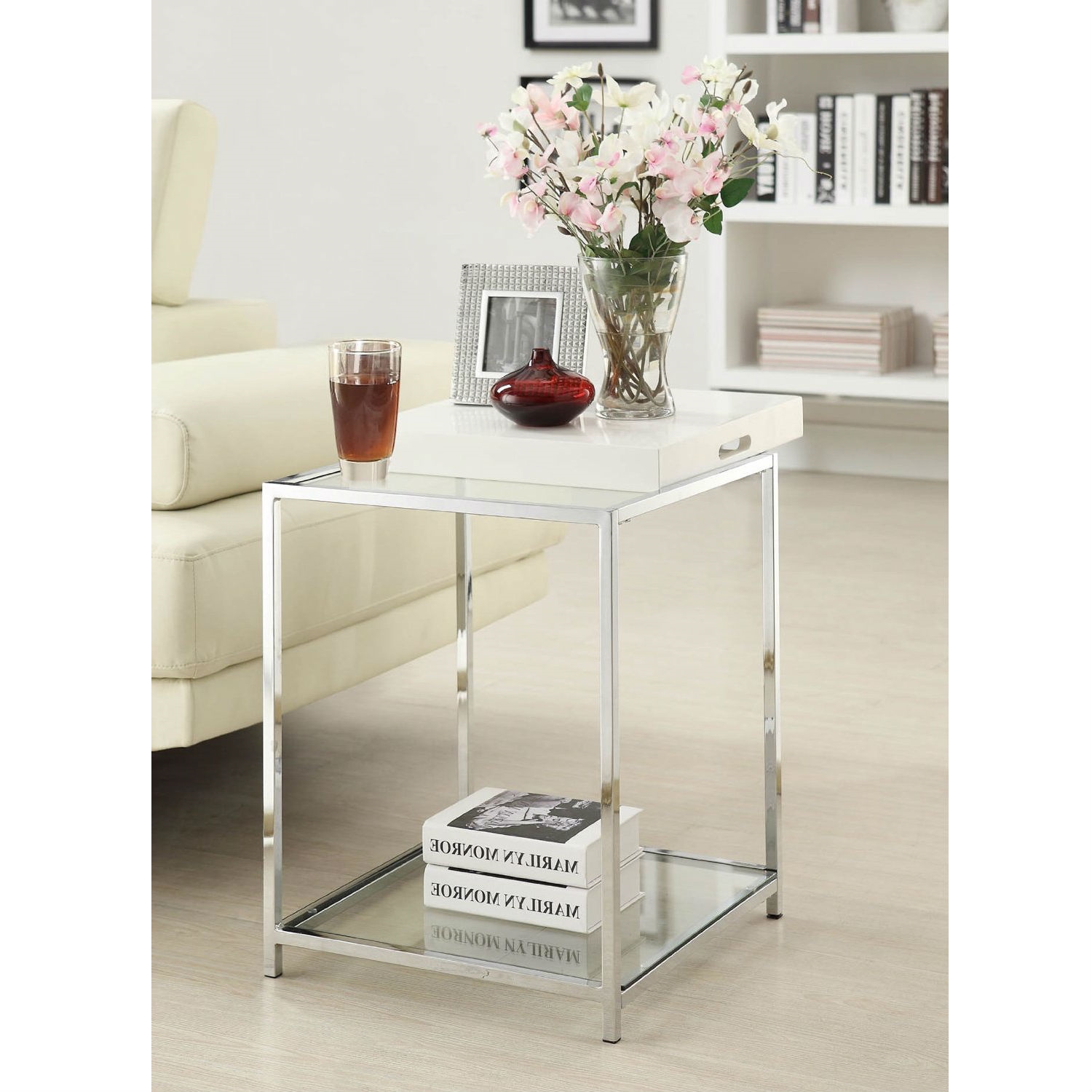This Modern Classic Metal End Table with White Removable Tray combines urban design and multi-function use. The Modern End Table with Removable Tray in Black features a removable black tray that can be reversed to use as a flat surface, or as a serving tray. Clear tempered glass table top allows use of end table with, or without tray.