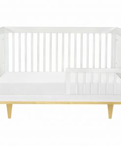 The 3-in-1 Modern Convertible Crib, with its clean lines, mid-century style legs, is the perfect contemporary crib for any modern nursery. Straight solid wood slats are designed to be sleek and simple, while two-tone white and natural color choices add flair and variety. This crib is built to last with convertibility from crib to toddler bed to daybed Stationary sides to keep your baby safe.