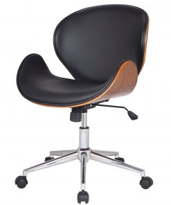 This Modern Classic Walnut / Black Faux Leather Office Chair with Curved Seat would be a great addition to your home. It has a black color and a cushioned seat back.