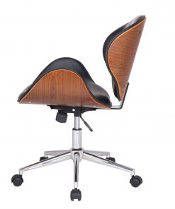 Modern Classic Walnut / Black Faux Leather Office Chair with Curved Seat