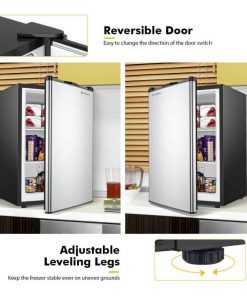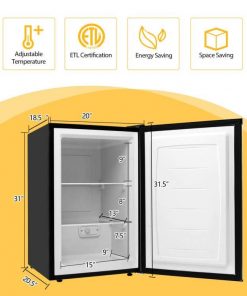 This Modern Compact 3 cu ft. Space Saving Portable Mini Freezer Home Kitchen Dorm is a 3.0 cubic feet free standing upright freezer features a stainless steel door, and black cabinet exterior presents a sleek and clean look. Mini size portable upright freezer, less space occupying, perfect for your small kitchen. Two chrome shelves provide more ways to organize your storage needs. Definitely a great convenience for life. Manual 7-grade temperature control knob on the interior of the cooler makes an approximate temperature range of -8°F to 7°F, you can select as your different needs. The upright freezer features a Recessed Door handle for easy access to your frozen foods. With space saving flat back design. Design of adjustable leveling legs offers much convenience to storage. Manual defrost helps keep the freezer clean. ETL approved.