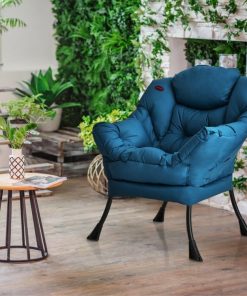 Modern Cushioned Accent Chair with Side Pocket in Navy Blue Upholstered Fabric