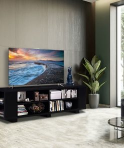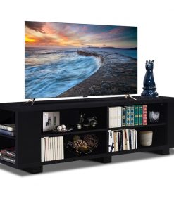 If you need a beautiful and durable TV stand to hold your TV or other things, don’t miss out on this Modern Entertainment Center in Black Wood Finish – Holds up to 60-inch TV. This TV stand is made of MDF veneer, which has a firm structure and strong load-bearing capacity. You can put things like TV, vases and photo frames on it. The most important thing is that it has a large capacity of open storage space. Eight cabinets allow you to put a lot of things, which saves you a lot of space. It has four threading holes on the back that allow wires from TV set-top boxes, dvd players, game consoles and stereos to pass through easily and orderly. And it’s easy to clean and assemble. It will be your best choice, don’t hesitate to buy it!