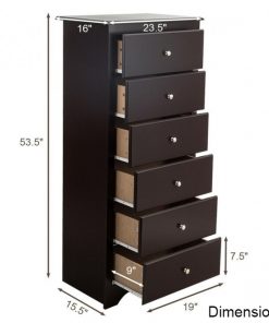 Strapped for space for need plenty of storage? This Modern Espresso 6 Drawer Tall Wood Dresser Chest is perfect for any bedroom no matter the size. Practical and attractive, this tall design provides ample storage space for all rooms