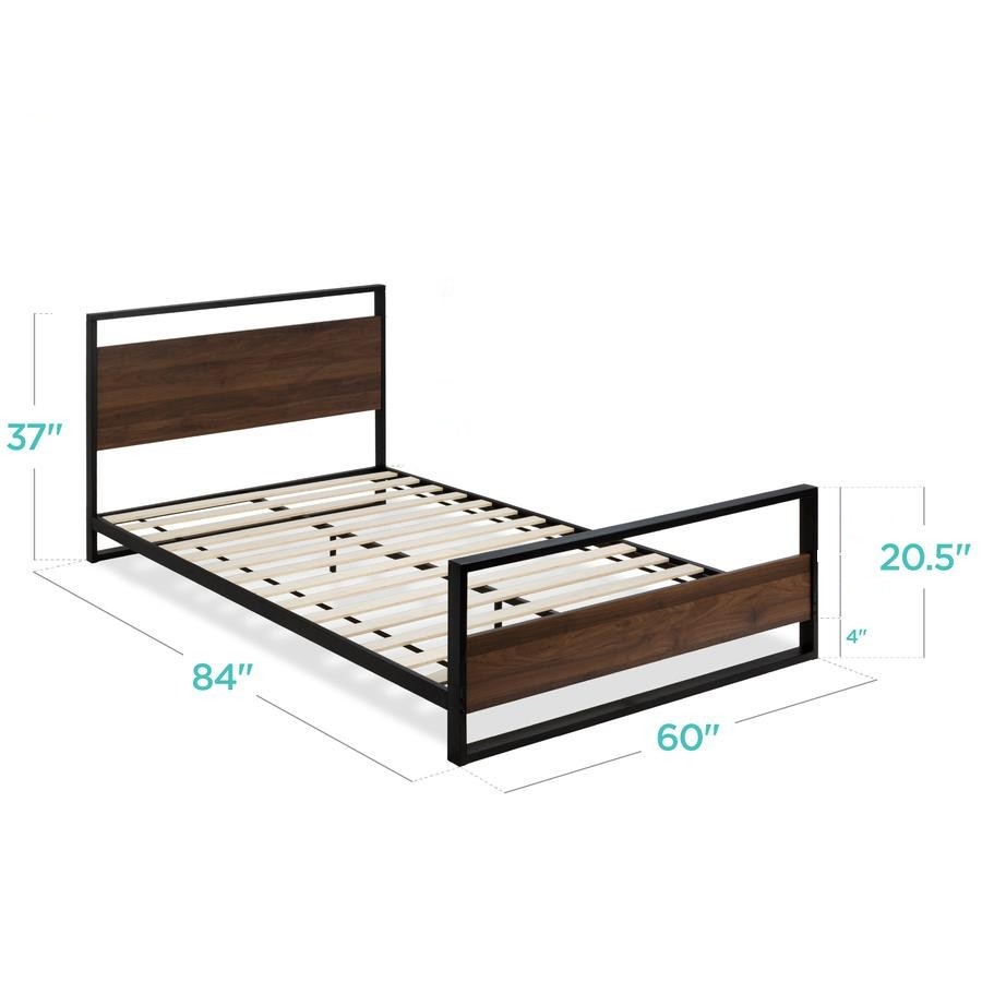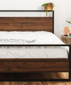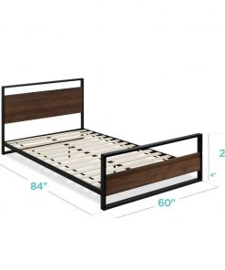 This Modern FarmHome Queen Low Profile Metal Wood Platform Bed is crafted with a stylish design that fuses modern simplicity and rustic appeal. Designed to provide the perfect foundation for any standard queen size mattress, with 14 wood slats that promote air flow and allow for sturdy rest without the need for a box spring. Durably made of heavy-duty steel tubing and wood, plus support legs at the base, this platform has a sturdy, low-profile design that withstands the test of time.