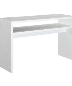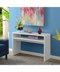 This Modern FarmHome White Sofa Table Console Table with Bottom Shelf has a no nonsense simple yet modern design. With a clean-lined silhouette and 2 ample shelves, you will have endless storage and display space. Its versatility also allows it to update your home study and den. Constructed from honeycomb particle board and finished with a rich melamine veneer, this accent table was crafted with longevity and easy maintenance in mind. Add to your living space in no time as this item requires minimal assembly, only six steps required.