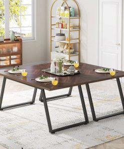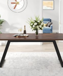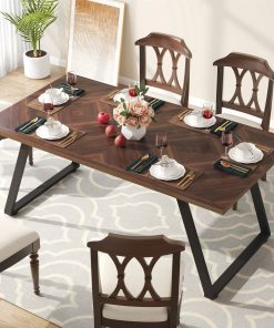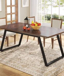 This Modern Farmhouse 63-inch Rectangle Dining Table Brown Wood Top Black Metal Frame in vintage is perfect for pairing with traditional, modern farmhouse, or country cottage aesthetics. Features a 1.18” high-quality MDF tabletop and stable 2.36” x 0.79” metal steel legs structure, making it anti-scratch, stain-resistant, and water-resistant. The safe water-based paint polished surface gives it natural and smooth lines. (Size:31.5″D x 62.99″ W x 28.74″ H), A table full of character and plenty of room for family and friends. The compact tabletop can easily accommodate 4-6 people comfortably, it is suitable for small family dinners. Or the Perfect piece for your backyard patio. The height of the dining table is 29.92, allowing you to stretch your feet easily while eating without feeling cramped. This kitchen table is a decent size for 4-6 people. This rectangular dining table is a great option for small Apartments. It provides enough space for meals and drinks, and the table is also lightweight and easy to move around.