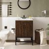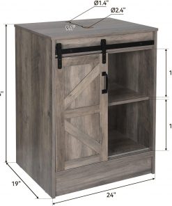 This Modern Farmhouse Bathroom Vanity w/ Barn Wood Sliding Door / Black Ceramic Sink is made of Eco-MDF wood for long-lasting durability. Careful Coverage and Eco paint enable durability. Sliding Door Design — Unlike traditional doors, sliding doors feel a sense of fashion. Open space meets various storage requirements. Cabinet: 19″x 24″x 31.5″(D×W× H); Sink dimension: 16.5″ x 5.5″ (W xD); Bowl thickness: 0.5″. Come with Vanity, Glass sink, ORB Faucet, Pop up drain, Hot/ cold lines, and some mounting hardware. Modern and stylish design fit perfectly with most bathroom decor; Easy installation.