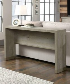 Give your living room a touch of of modern farmhouse beauty with the Modern Farmhouse Oak Living Room Console Sofa Table. Behind sofa table features a spacious top surface that provides you with the perfect amount of space to store and display a variety of different items like an accent lamp, decorative plants, your collection of photos. This narrow sofa table is finished on all sides for versatile placement throughout your home. Have it behind your couch or standing alone on a living room wall as a stunning accent piece. It looks great no matter where it stands! This modern sofa table also features powder coated metal end caps for an extra touch of detail that is sure to stand out in your home. Its strong and lightweight 1 ¾ panel construction makes it sturdy and easy to move. Finished in Farmhouse Oak, this one-of-a-kind sofa table is just what your living room needs.