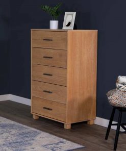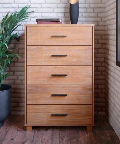 Give your room a modern look while adding functional storage space with the sleek Farmhouse Modern 5 Drawer Chest. A high-quality, wire-brushed finish combines with solid wood to create a piece with quality and craftsmanship usually not seen on such modern pieces.