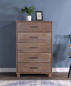 Modern Farmhouse Solid Wood 5 Drawer Bedroom Chest in Pine Finish