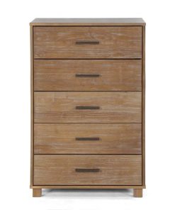 Modern Farmhouse Solid Wood 5 Drawer Bedroom Chest in Pine Finish