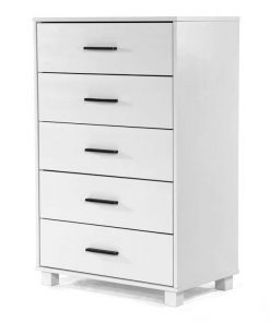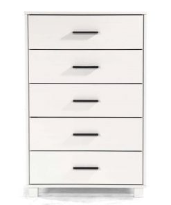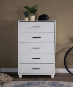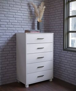 Give your room a modern look while adding functional storage space with the sleek Farmhouse Modern 5 Drawer Chest. A high-quality, wire-brushed finish combines with solid wood to create a piece with quality and craftsmanship usually not seen on such modern pieces.