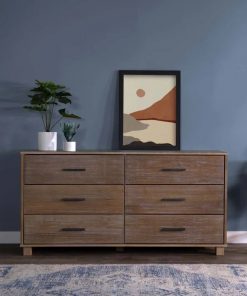 Modern Farmhouse Solid Wood 6 Drawer Double Dresser in Rustic Pine Finish
