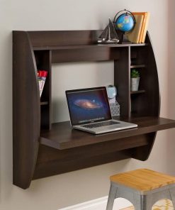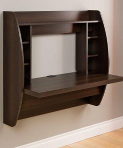 Optimize your space with this Modern Space Saving Wall Mounted Floating Laptop Desk in Brown Wood Finish. innovative and stylish wall mounted desk with make a great addition to your workspace. Perfectly suited for any home office, den, living room, kitchen or entryway. The stable work surface is perfect for your computer or simply as a place to get your work done. The side compartments and top shelf provide functional storage and visual appeal. Installation is a breeze with this innovative metal hanging rail system. Proudly manufactured in North America using CARB-compliant, laminated composite wood. Ships Ready to Assemble, includes an instruction booklet for easy assembly and has a 5-year manufacturer’s limited warranty.