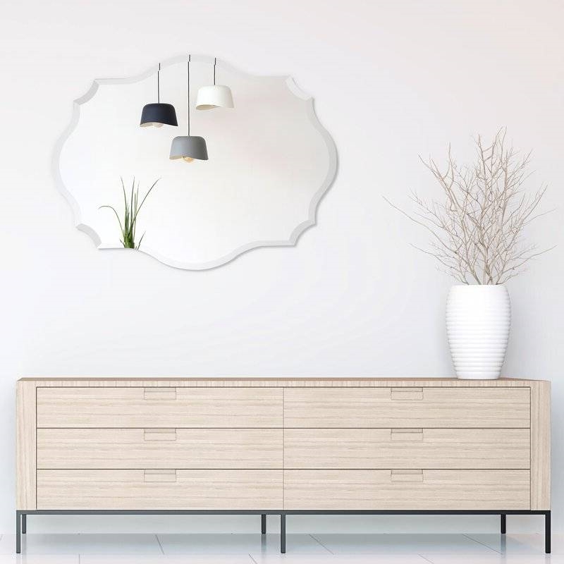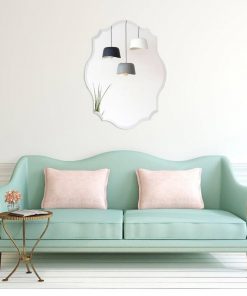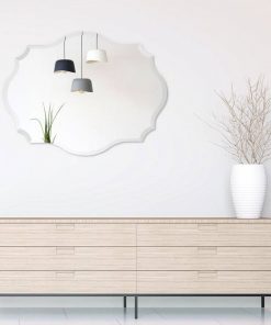 Marrying classic character with modern style, this beveled frameless accent mirror showcases scalloped edges and curved corners, and will look beautiful in your bathroom, bedroom, as an accent mirror in hallway or living room. This beveled wall mirror is a must for opening up small spaces, getting a glimpse of your lovely reflection, and reflecting light throughout your room for a brighter feel. Installation hooks are included, so you can hang this mirror vertically or horizontally.