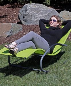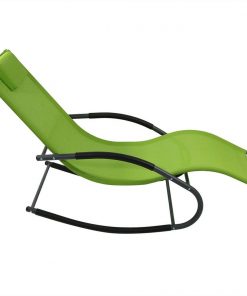 Add comfort and sleek contemporary charm to your space with this Modern Green Rocking Chair Chaise Patio Lounger with Pillow. This rocking chair is specifically designed for placement in the outdoors, as it is feature weather-resistant 70% vinyon and 30% polyethylene seat material. Plus, comes with a pillow that attaches and detaches with hook and loop fasteners so you have added head support.