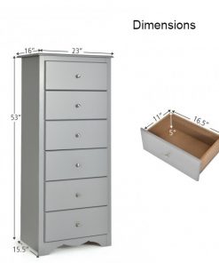 Strapped for space for need plenty of storage? This Modern Grey 6 Drawer Tall Wood Dresser Chest is perfect for any bedroom no matter the size. Practical and attractive, this tall design provides ample storage space for all rooms