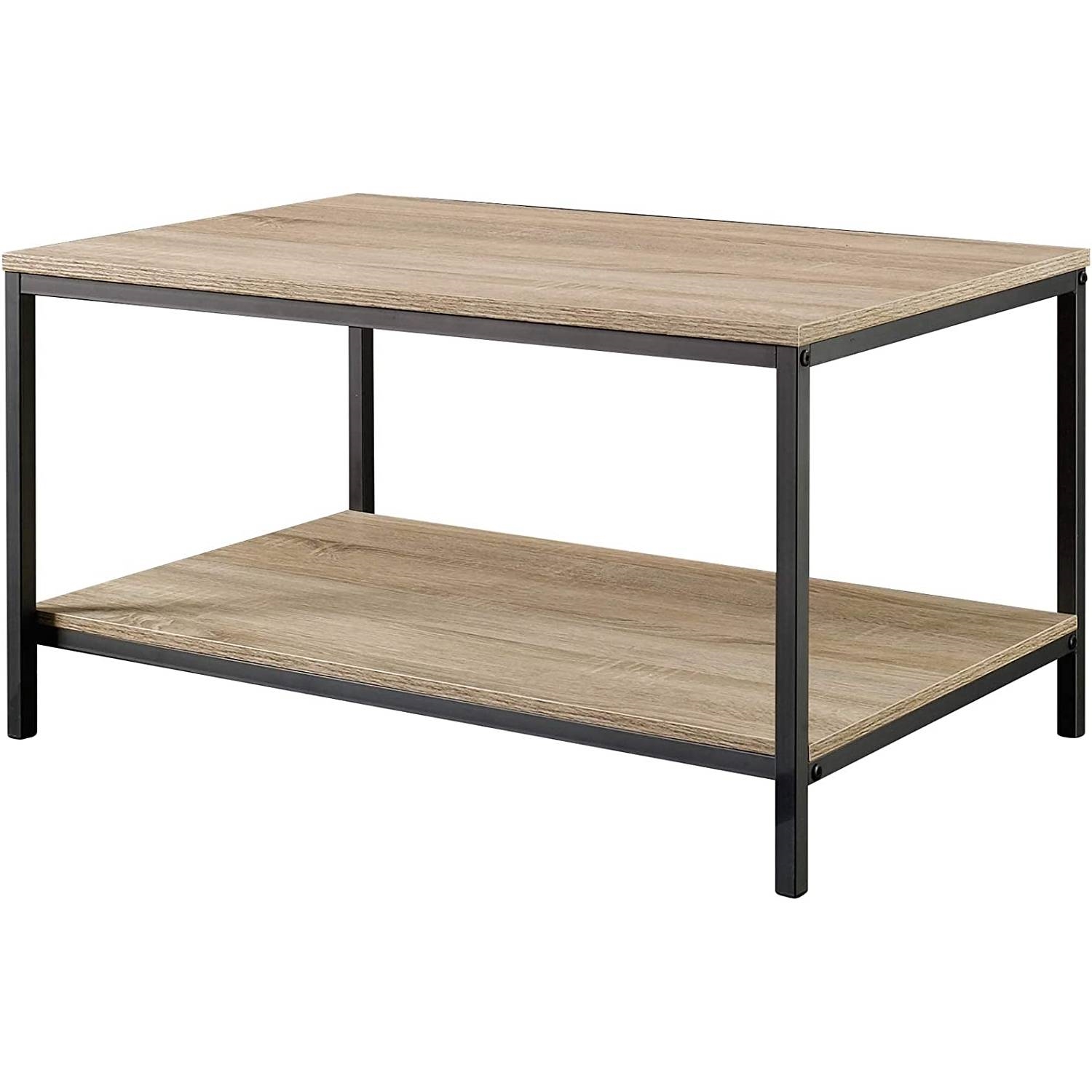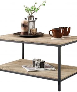 - Modern Industrial 2-Tier Coffee Table in Rustic Light Oak Wood Finish
