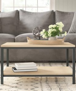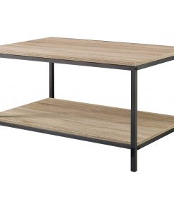 Give your home a chic industrial update with this Modern Industrial 2-Tier Coffee Table in Rustic Light Oak Wood Finish. Its spacious tabletop provides you with room for magazines, mail, coasters and of course your cup of coffee. It also features a large, lower open shelf for additional storage and display. Constructed with a durable, black metal frame and finished on all surfaces in Charter Oak, this stylish coffee table will complete the look of your living room.