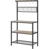 - Modern Industrial Black Metal Brown Wood Kitchen Baker’s Rack Microwave Cart