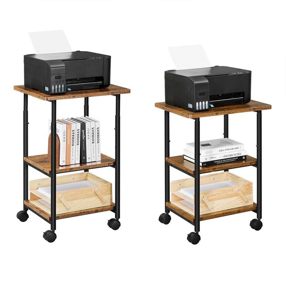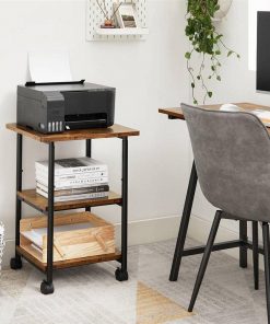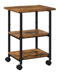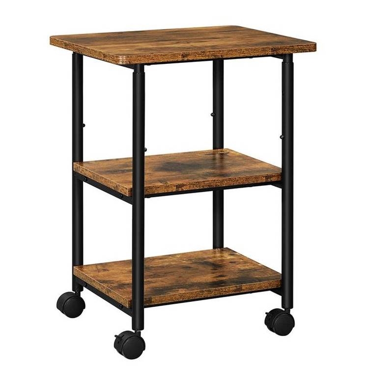 - Modern Industrial Black Metal Rustic Wood Printer Stand Cart on Locking Casters