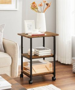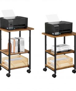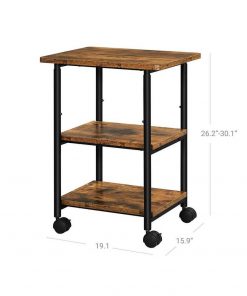 Is your printer taking up too much space on your desk? Or, does it feel like your printer is miles away? Try out this Modern Industrial Black Metal Rustic Wood Printer Stand Cart on Locking Casters! It offers your an extra-spacious table top to keep your printer within easy reach. With the adjustable table top, you get a flexible space with a lower height at 26.6 or a higher height at 30.1. All you need to do is set it at your favorite height and invite printers, paper reams, and other office supplies in. Colleagues may come and go, but this printer stand will be always by your side as your committed partner. Its made of high-quality particleboard and a sturdy steel frame, which is stable and durable. The most convenient part about this printer stand is that its equipped with 4 rolling casters, 2 of which are lockable. You can move it around no matter where you need it and lock it in position. In addition to a printer stand, what else did you see from its original mix of greige particleboard and industrial black steel? A simple, rustic storage cart! You can roll it in through your home as a kitchen trolley or a side table.