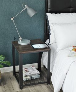 Some furniture looks good, but isn’t very practical. Others are functional, but look cold and boring. Not so much for this Modern Industrial Metal Wood Nightstand Side Table with Mesh Shelf with warm wood tones and a stable grid shelf, you get the best of both worlds. The sturdy, matte-black iron frame and robust tabletop with a rustic look are precisely the elegant mix of styles that make this multi-functional bedside table stand out; it has unique character, remarkable durability and a great load capacity on the tabletop (up to 44 lbs) and shelf (up to 33 lbs).