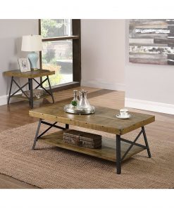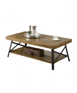 Crafted with a rustic, industrial style, this Modern Industrial Style Solid Wood Coffee Table with Steel Legs seamlessly blends cool, strong steel and warm, natural hardwood for a comfortable, functional space. Instantly recognizable for its cross-braced legs, these pieces are a striking addition to any room.