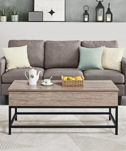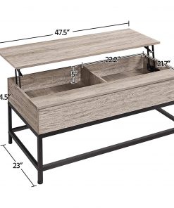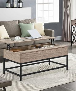 - Modern Metal Wood Lift-Top Coffee Table Sofa Laptop Desk in Grey Wood Finish