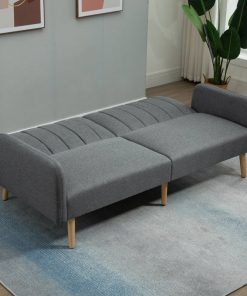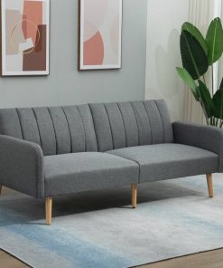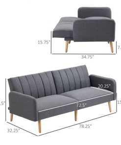 Cuddle up in the soft comfort without sacrificing your home space with this Modern Mid-Century Light Gray Linen-touch Polyester Futon Sleeper Sofa Bed. This small sofa features linen-touch fabric for easy maintenance and thick sponge padding upholstery for exceptional sitting comfort. The backrests can be adjusted to 3 different positions separately to accommodate various needs. Suitable for living room, bedroom, dorm, office, and ideal for all year use. This sofa sleeper can relax you at any time, make your life more enjoyable. 2-in-1 Design: You can enjoy it as a loveseat sofa during the day and as a sofa bed at night. Suitable for small rooms that can’t accommodate too much furniture. Perfect for hosting overnight guests. The backrest of couch bed can easily adjust to 3 different positions. A split-back design allows you to recline the backrests into multiple positions separately. Breathable linen touch fabric and thick padded sponge cushion provide an excellent sitting experience and removable armrests for added support with the sleeper sofa. Rubberwood legs provide superior stability. And with adjustable feet to make this couches for living room stable on uneven floors. Striped pattern on the backrest and with the oak wood legs make this futon couch minimalize and elegant. Suit for living room, bedroom, office and more. Overall Dimensions: 78.25″ W x 32.25″ D x 31.5″ H (sofa), Assembly required.