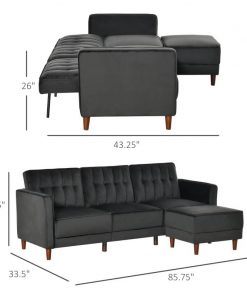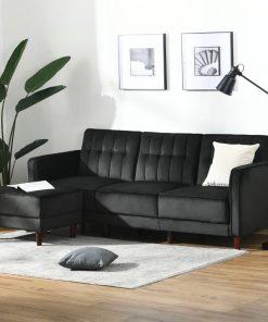 Everyone loves home furniture that does double duty, especially those living in compact home spaces. This Modern Mid-Century Reversible L-Shaped Sectional Sleeper Sofa in Black Velvet ensures you can have the lounge area you deserve and the second bedroom for an overnight guest. This sleeper couch with chaise lounge features velvet-touch fabric for easy maintenance and thick sponge padding upholstery for exceptional sitting comfort.