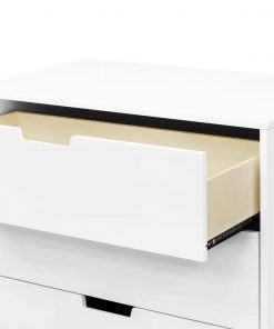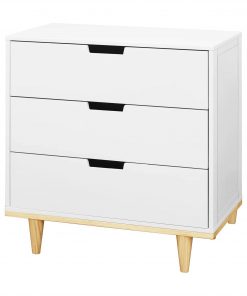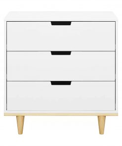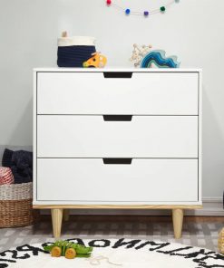 Tuck away all your baby’s needs in this Modern Mid-Century Style 3-Drawer Dresser Chest in White Natural Wood Finish will add a pop of personality to any modern nursery, the Dresser features three spacious drawers on smooth, pre-installed ball-bearing metal glides for easy assembly and accessibility. Pair with an available removable changing tray for a functional and stylish addition to the baby’s space. 3 spacious drawers that are built to hold all the adorable baby clothes, blankets, and more. Changing stations now. Big kid dresser later! This dresser is designed so that you can add a changing tray (#M0219) to use as a convenient changing station during the baby years. Ball-bearing drawer glides make opening the drawers easy even when your hands are full with your baby. We’ve done the hardest part for you! Drawer glides come pre-assembled so that you can put your dresser together more quickly and start enjoying your nursery sooner. Made of solid sustainable New Zealand pinewood and TSCA compliant engineered wood -only the best for your baby. Say goodbye to toxic chemicals! Finished in a non-toxic multi-step painting process and lead and phthalate safe. Rest assured knowing it exceeds ASTM International and U.S. CPSC safety standards. Stop mechanism and anti-tip kit included for additional safety.
