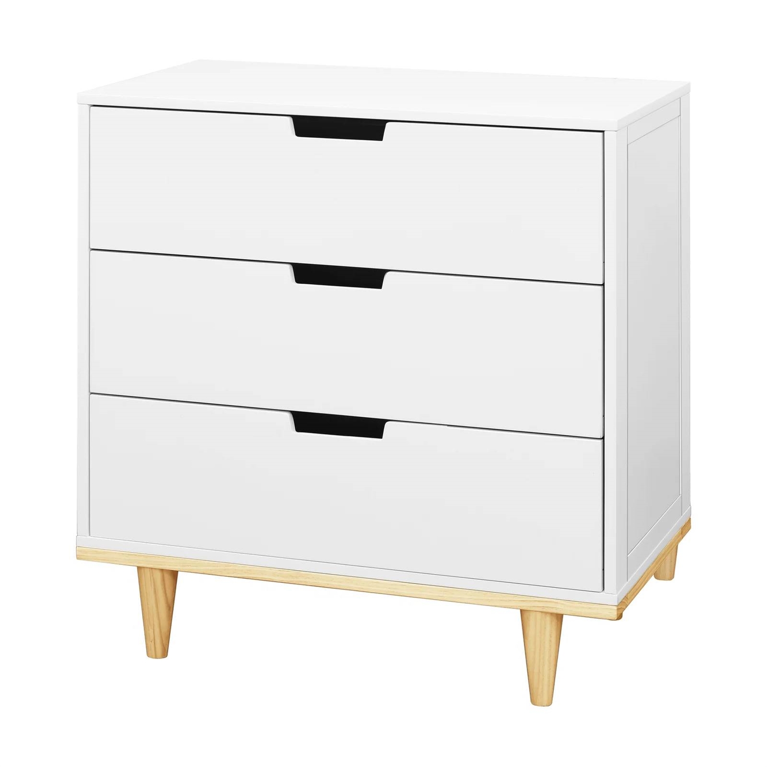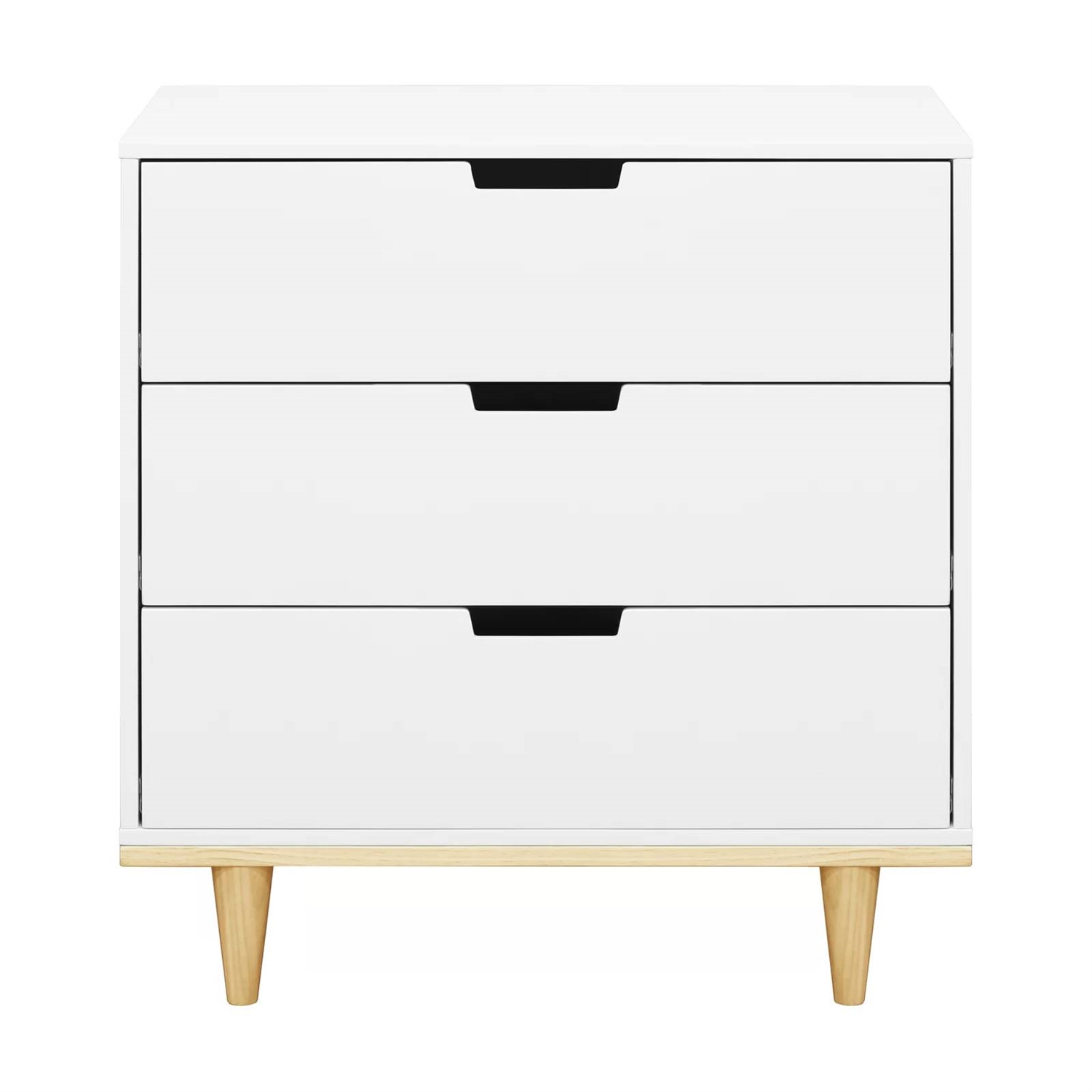 - Modern Mid-Century Style 3-Drawer Dresser Chest in White Natural Wood Finish