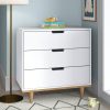 - Modern Mid-Century Style 3-Drawer Dresser Chest in White Walnut Wood Finish