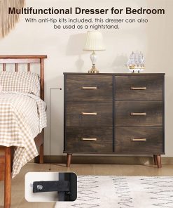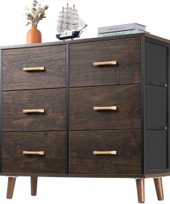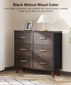 This Modern Mid-Century Style 6-Drawer Bedroom Dresser with Fabric Drawers in Walnut would be a great addition to your home. This chest of drawers is great for bedroom, closet, living room, nursery room, hallway and bedside. Lamp and photo frame can be placed on wood top. This 6-drawer dresser for bedroom is ideal for organizing lingerie, blankets, underwear as well as clothes of your kids and babies.