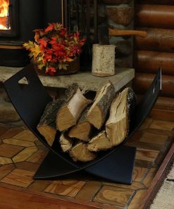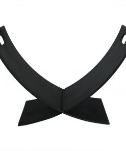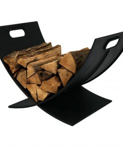 Defined by flowing, sleek curves, the Modern Outdoor Indoor Heavy Duty Black Steel Firewood Log Holder Rack makes a bold minimalist modern statement while keeping a large log pile neatly stored. The heavy-duty steel log holder can stand the test of time whether used indoors or outdoors and features integrated handles for easy carrying. For weather protection, the steel is finished with a durable black powder coating. A two-piece design allows for quick and easy assembly.