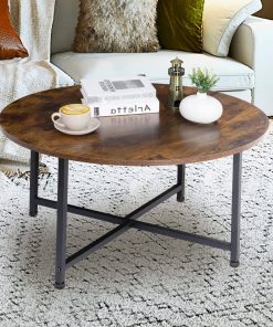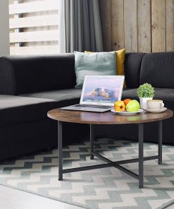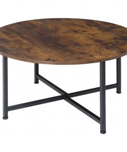 - Modern Round Industrial Coffee Table with Rustic Brown Wood Top