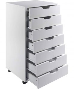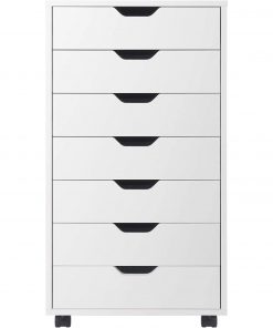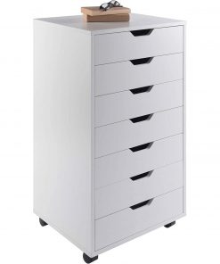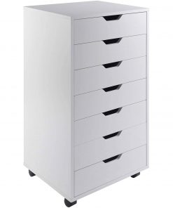 Use this Modern Scandinavian Style 7-Drawer Storage Cabinet Chest in White Finish to help stay organized. A clean, simple design that you will find function in just about any room of your home. Eliminate the appearance of clutter in your craft room, kitchen or kids’ room. The Modern Scandinavian Style 7-Drawer Storage Cabinet Chest in White Finish feature a multitude of drawers with cutout drawer pulls that allow for easy-open access and helps create an easily accessible storage unit. Store paper and other material used for a business in your in-home office or den. Sitting on four casters, two of which lock, allowing for easy mobility when needing to move or locking in place to use as a stationary. With a vertical design that helps to minimize the need for a lot of floor space, making this an ideal unit for a walk-in closet; store your jewelry, styling accessories, makeup pallet and brushes. Easy glide drawers with an interior dimension of 15.9 in. W x 11.73 in. D x 2.55 in. H and a weight capacity of 20lbs each. Finished in white and constructed of a combination of sturdy solid beech wood and some composite. For additional storage, pair with other organizers from this collection. Conveniently packed and shipped in 1 box, that includes the hardware necessary for assembling. Replacement part request can be submitted directly to the manufacturer within 60 days from date of purchase.