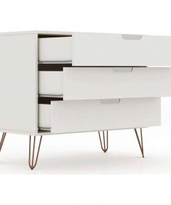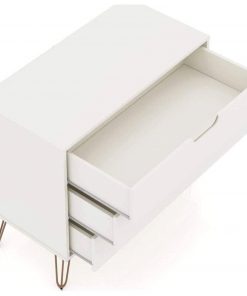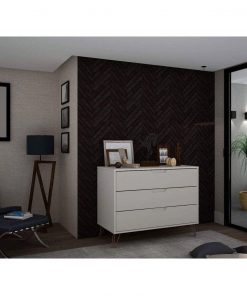 Bring that relaxed flair with this Modern Scandinavian Style Bedroom 3-Drawer Dresser in Off-White Finish. The dresser measures 35. 24″ L in. x 17. 52″ W in. x 28. 86″ H in. and weighs 65. 56 lbs. This dresser is crafted from durable MDF and metal. A perfect piece for your living space, the dresser has three spacious pullout drawers to store clothing and other essentials. Features a stylish Midcentury design with splayed hairpin metal legs. The spacious table top is a great place for a lamp, a vase, framed photos, and travel trinkets. Manhattan Comfort, a developing furniture company based in New York City, began with the goal of bringing modern and stylish furniture to living rooms nationwide. Gradually becoming a household name, Manhattan Comfort creates quality furniture through a production process that ensures each piece created is flawless. We highly value our customers’ satisfaction, and we are committed to continually offering contemporary high-quality furniture at affordable prices.