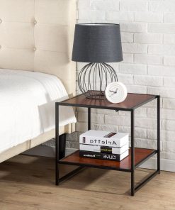 This Modern Steel Frame End Table Nightstand in Brown is an ideal combination of function and style. The 20 Inch Square Side Table can function as a night stand, end or side table, coffee table, or to hold various items in any room of the home. With an additional lower shelf, storage space is maximized. The sturdy, black square steel tubing and high density panel with rich black wood grain finish will add an elegant touch to any décor. Easy to assemble. Worry free limited 1 year warranty.