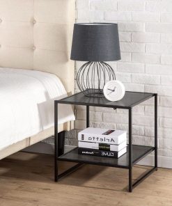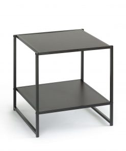 This Modern Steel Frame End Table Nightstand in Espresso is an ideal combination of function and style. The 20 Inch Square Side Table can function as a night stand, end or side table, coffee table, or to hold various items in any room of the home. With an additional lower shelf, storage space is maximized. The sturdy, black square steel tubing and high density panel with rich black wood grain finish will add an elegant touch to any décor. Easy to assemble. Worry free limited 1 year warranty.